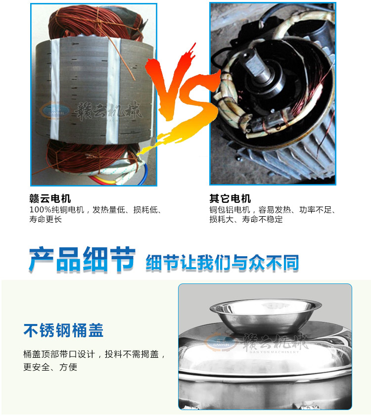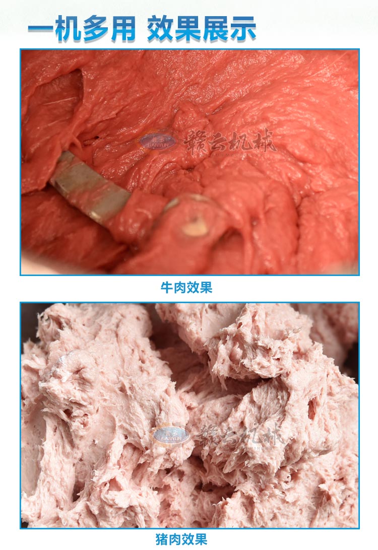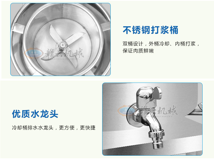 传动系列肉丸机现目前全部配备拉升不锈钢双打浆桶,针对老款打浆底部肉浆不宜翻转而改进。新款更具美观性,24型传动肉丸打浆机一次可打5斤左右肉浆,1-2分钟即可完成打浆,打浆过程外桶加冰或冰水可对内桶起冷却作用,有效防止肉浆因打浆升温而破坏肉类组织细胞,同时打浆双桶和电动机错位设计,可有效保护电机。