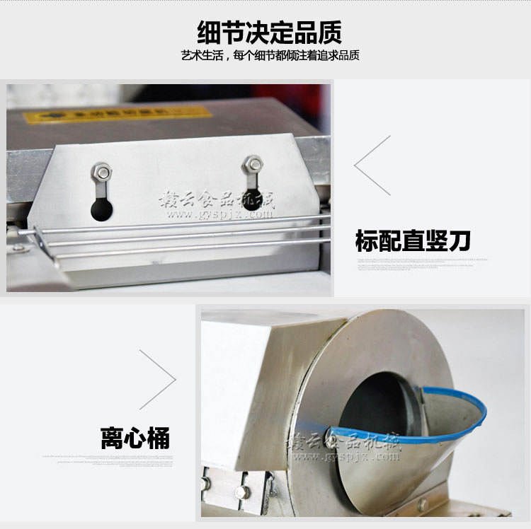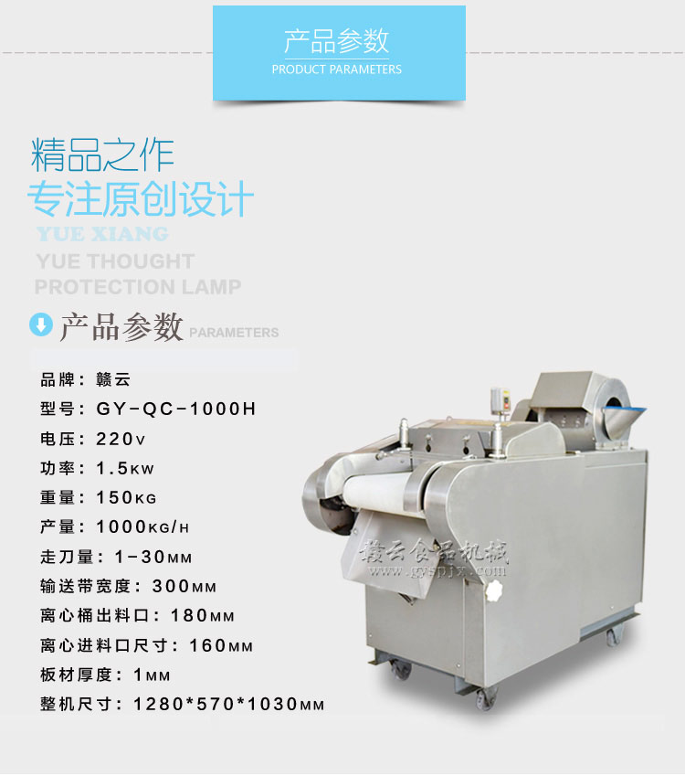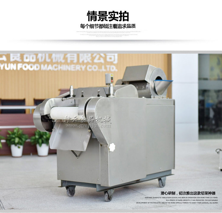 商用切菜机-赣云1000型加厚商用多功能切菜机,采用物料离心力设计配合手工模拟切菜原理,实现一次切丝,亦可跳过离心机构,直接采用模拟手工切菜原理切片、丝、丁、条等。还适用于灵芝、阿胶、年糕、米果等食品类和药品类企业的加工。