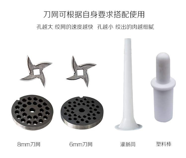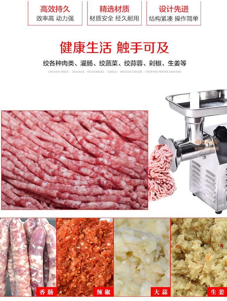 赣云台式新款绞肉机 不锈钢精品配铜线电机 做工升级 品质好,冬季绞肉灌肠好设备,可绞肉末,可绞干货,绞生姜大蒜等,配灌肠筒可灌制香肠腊肠,绞龙采用食品级不锈钢,符合食品卫生需求。欢迎选购。
