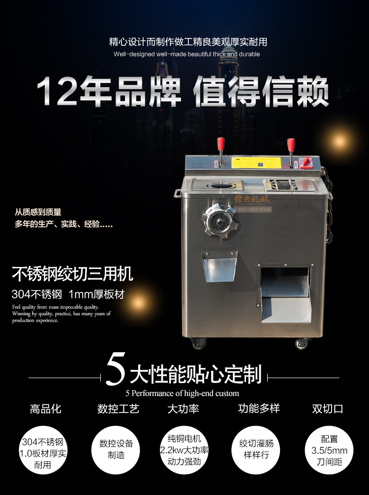 赣云2017款绞切三用机火热开卖,新品上市,全304不锈钢板材封装设计,外形美观大气,配有3.5mm和5mm切肉片双入口,可切两种规格肉片,整机配备2.2kw大功率纯铜电机作为动力,绞肉切肉力度强而有力,速度快,离合开关控制,操作随心。