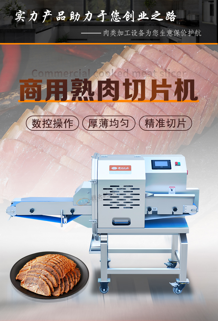 用于猪头肉、腊肉、牛肉、扣肉、五花肉、火腿等快速切片切段,适应多种食材。
