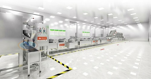 包装设备: 给袋式真空包装线,自动完成定量称重包装完成最终出品。