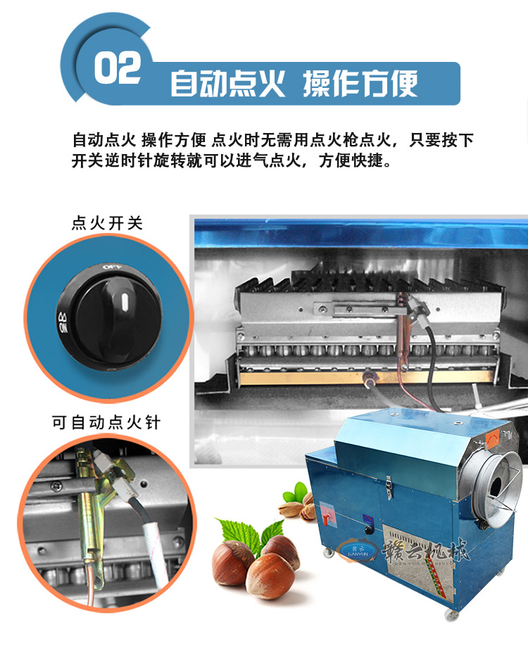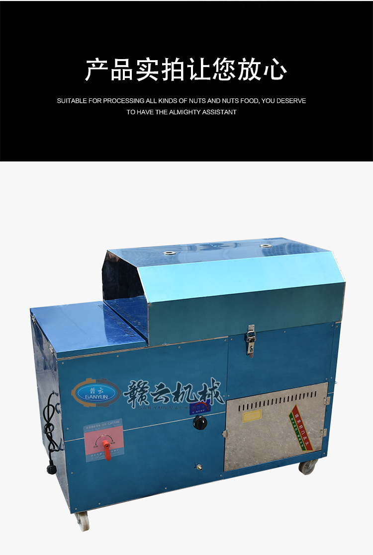 炒货出入锅十分方便,只需按动正反转开关,电机既带动滚筒反转,炒货和小石子会一同出锅,自动分离,迅速快捷,省事不费力,干净又卫生。是一种值得广大中小投资者关注的好设备,适合于炒货厂、商场、菜市场、超市居民区农村集市等固定经营,也可流动现炒。