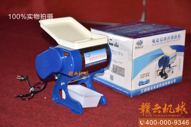 赣云台式切肉机新款上市,主要用于卤菜、鲜肉的加工,一次成片、二遍成丝,三遍成粒,具有不卡肉,切片速度块、外形美观大方,易清洗等有点。本机为2.5mm规格固定切片厚度,同款型号还有3.5mm规格刀间距规格,厚薄固定不可调。