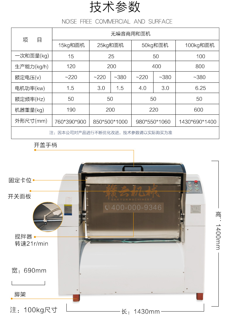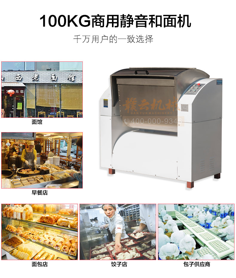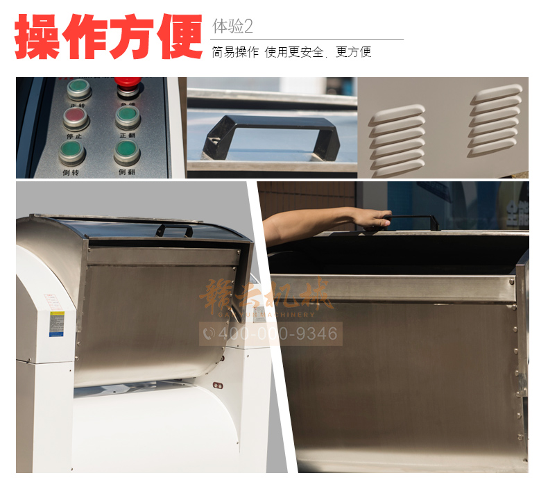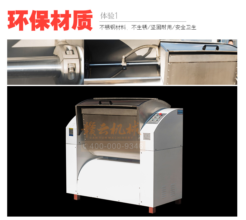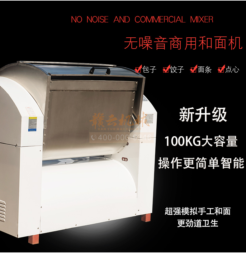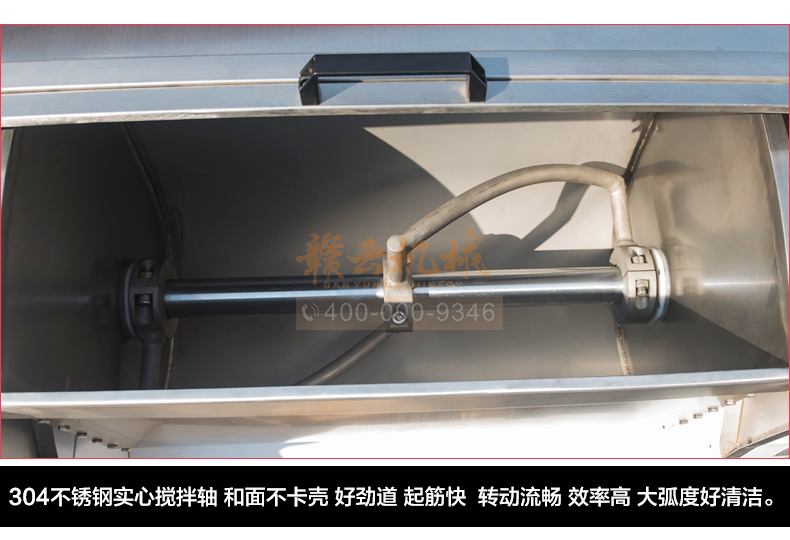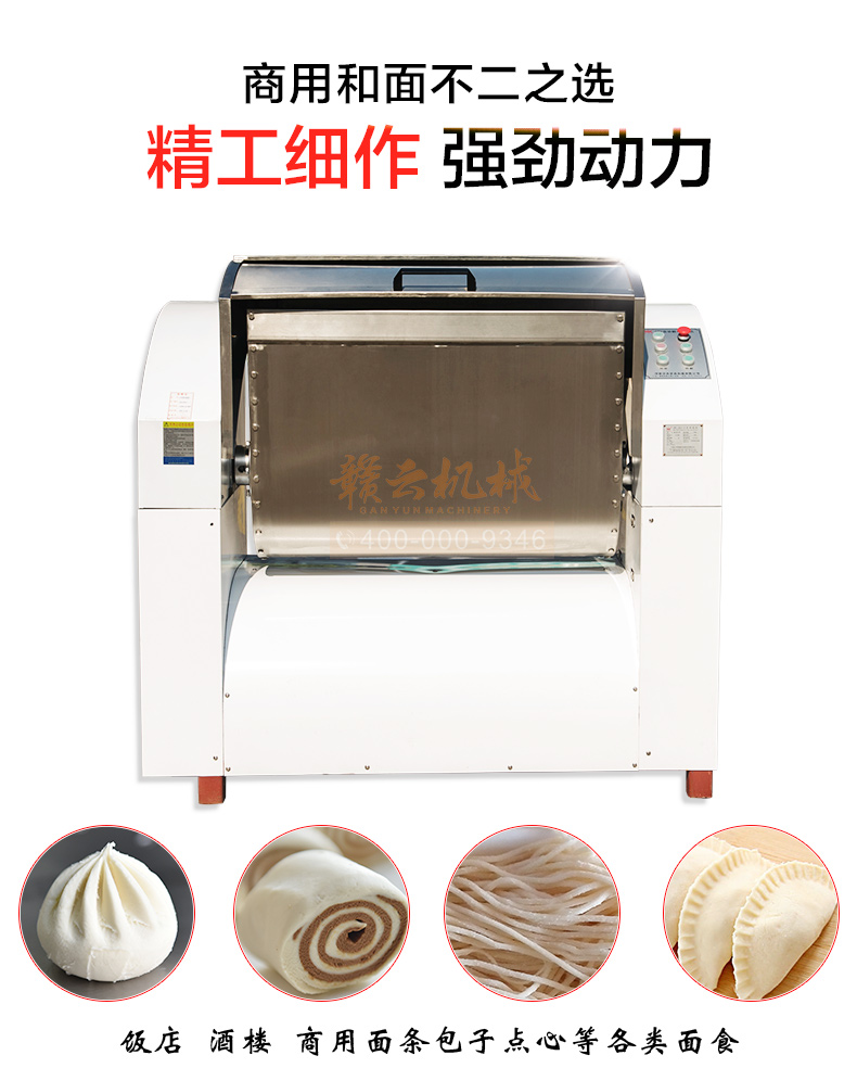 赣云100kg商用和面郎,和面搅拌设备,搅拌轴和搅拌桶均采用304不锈钢材质设计,自动倒料装置,科学设计,省时省力。