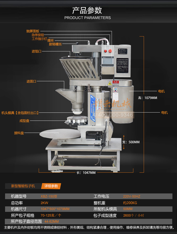 新型智能包子机产品技术参数: