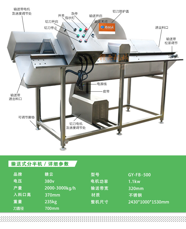 主页-> 果蔬加工机械->净菜加工设备->输送式分半机