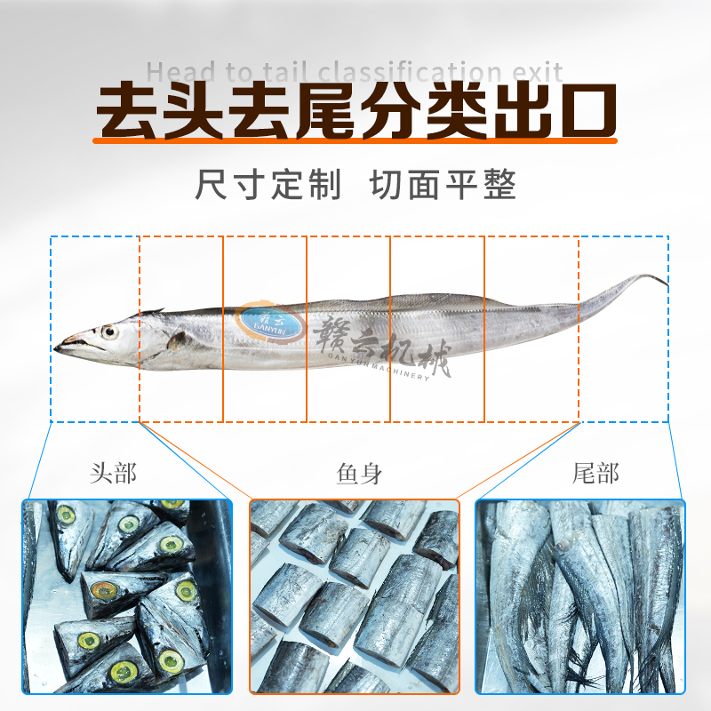 适用于鲜带鱼、微冻带鱼、秋刀鱼、鳕鱼、鲅鱼、海带、肉干、长条果蔬、鲜肉等长条物料快速切段。