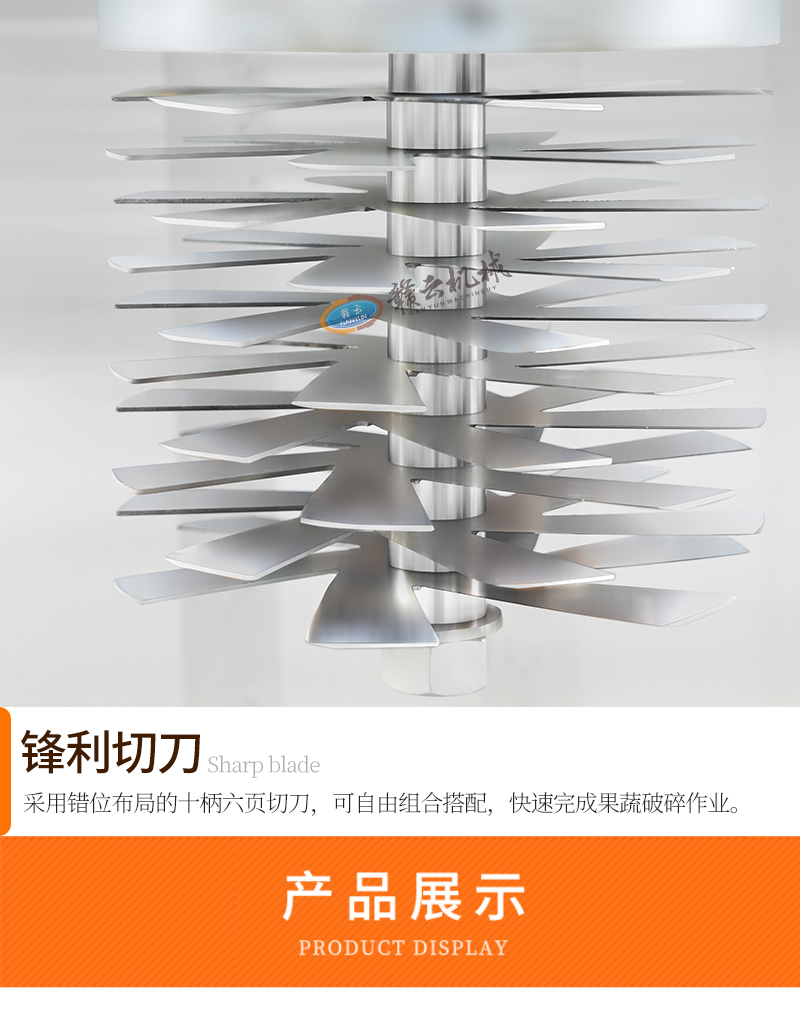 赣云机械推出的多功能破碎机,专为食品加工行业与餐饮厨房设计,旨在解决传统果蔬加工效率低、颗粒不均的难题。设备采用食品级不锈钢材质打造,不仅坚固耐用且清洗维护极为方便,符合现代化食品卫生安全标准。核心动力搭载大功率电机,配合内部独特的十把六页切刀错位排布设计,通过高速旋转形成多层剪切效果,能够精准适配生姜、大蒜、辣椒、芹菜、花生、山药及根茎类蔬菜等不同物料的破碎需求。无论是需要细小颗粒状馅料,还是细腻的泥状调味底料,该设备均能通过刀组调节轻松实现。其加大加长型方形料斗设计兼顾了防撒漏与防堵塞功能,结合直观简洁的控制面板,让操作人员无需复杂培训即可上手,实现连续化生产作业。