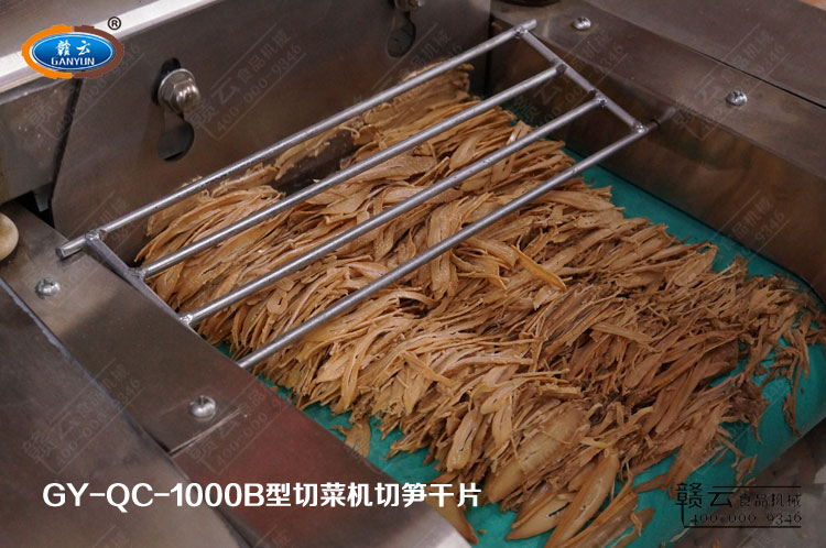 赣云牌多功能切菜机切笋干的视频演示于2012年10月9日下午拍摄完成,并制作成视频上传,欢迎切笋干、笋丝加工需求的客户参考,笋丝切片厚薄可调范围0-20毫米,笋丝宽度的控制,可事先将较大笋干对半切开。多功能切菜机不可直接切笋干,需将笋干在清水中浸泡48小时以上,视频拍摄时笋干浸泡了三天。视频中还列举出了多功能切菜机切其他产品,如:切年糕片、灵芝片、辣椒丁、豆干丝、烫皮丝、牛肚、青菜丝、胡萝卜丁等,视频效果或图片效果请查看相应新闻或产品操作视频。
