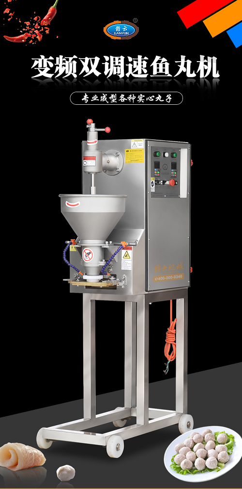 赣云160型调速肉丸成型机:这是一台带用变频调速功能的肉丸成型机,通过数字变频,让肉丸成型速度可观,这样可以根据不同的丸子精准调节成型效果。设备同样采用食品级不锈钢材质,这款成型机采用加高设计,在搭配赣云双加热水槽使用,这样可以达到更高的效率。机器的开关采用防水设计,减少安全风险。齿轮是纯铜打造,让关键部位不易生锈,经久而用。