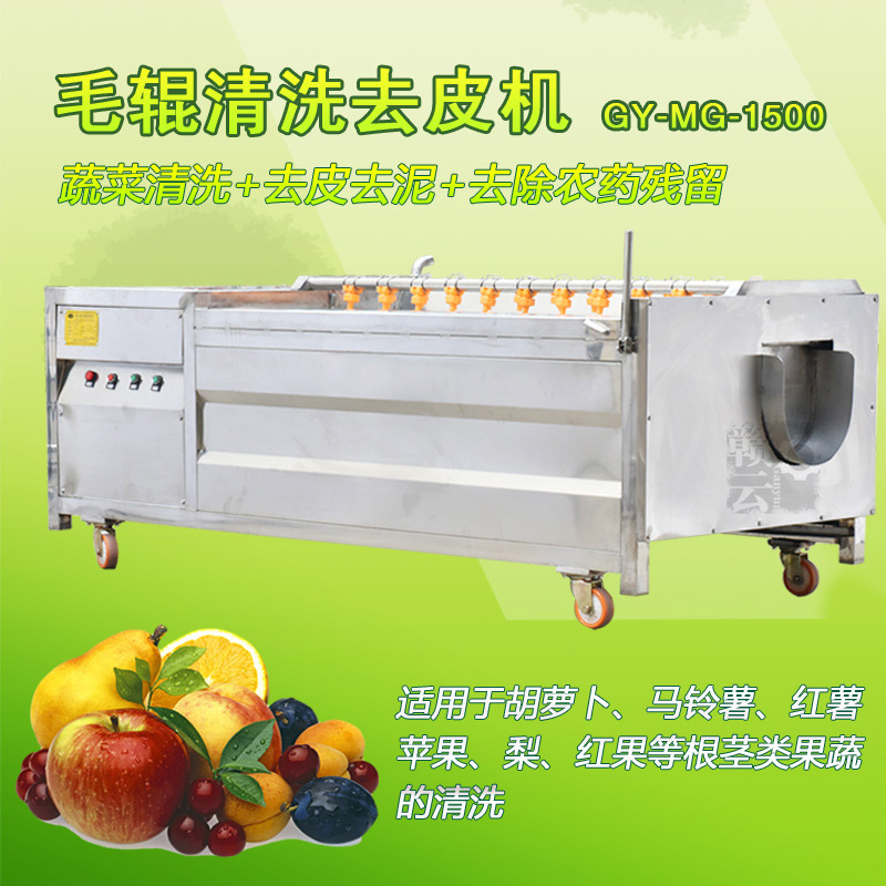 3、毛刷式清洗机:毛刷式清洗方法是通过刷毛与水中物料的直接接触,使物料表面的污物刷除洗净,该类清洗方式适用于马铃薯、萝卜等根茎类蔬菜的清洗。