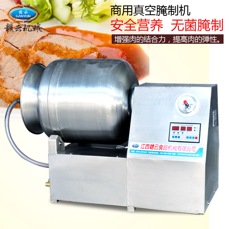 真空滚揉机作为肉食加工企业最常用的机械设备,主要作用是将被加工的肉类如牛肉、羊肉、鸡肉、猪肉、鱼肉等在真空状态下滚揉腌制,不但可提高调味品进入肉品的速度,并最大限度的保持肉内的水分,还可以达到肉质鲜嫩,出品率高的目的。真空滚揉机为不易损坏产品,因此设备基本不需要维修。尽管如此,为了以防万一,还是还是为大家整理了真空滚揉机维修和注意事项。