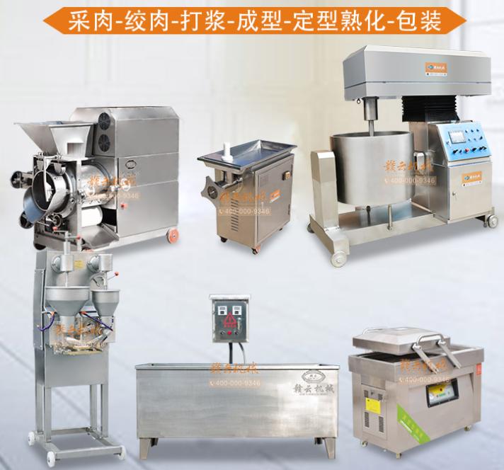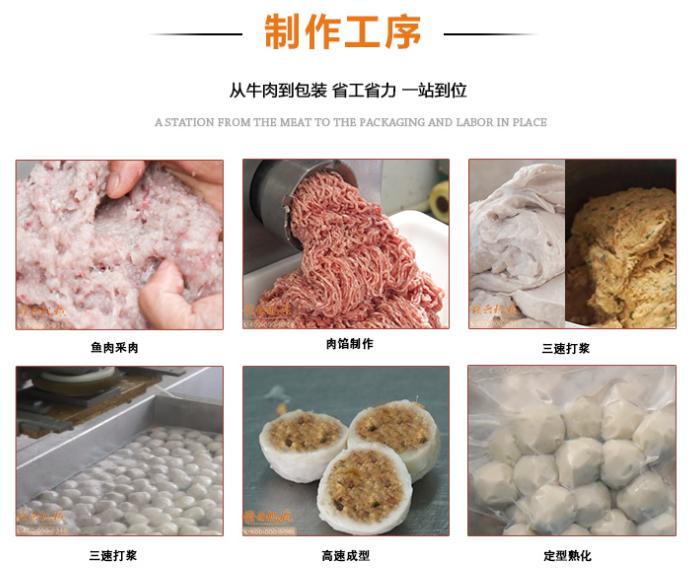 丸子加工的成套设备有:鱼肉采肉机——立式不锈钢绞肉机——350型液压式打浆机——第三代肉丸包心机(实心丸子、包心丸子、贡丸机器、多功能丸子设备)——温控双加热水槽——双室真空包装机。
