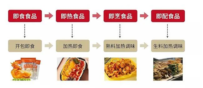 按食用方式:分为即食食品、即热食品、即烹食品、即配食品。