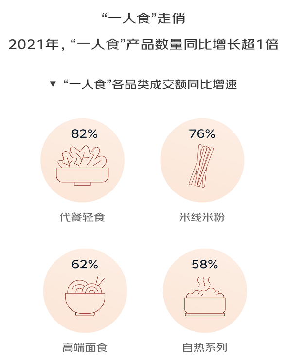 数据显示,2021年代餐轻食品类成交额同比增长82%,同时女性群体的儿童速食成交额同比增长78%。所以,建议新入局企业可聚焦这类需求,在产品设计上突出健康和便捷,通过短视频等新型消费渠道精准对接这些消费者。