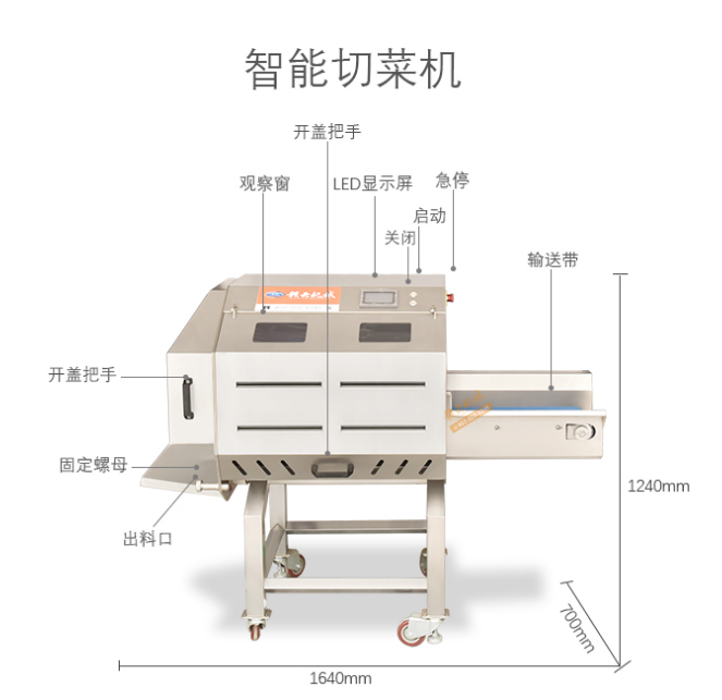 数字多元化切配设备利用斩刀快速切割原理设计,适合各类叶菜类,球根类的切割工序,厚度1-60mm(可单独定制)范围内变频可调,适合多元化中央厨房与食堂切配之用。