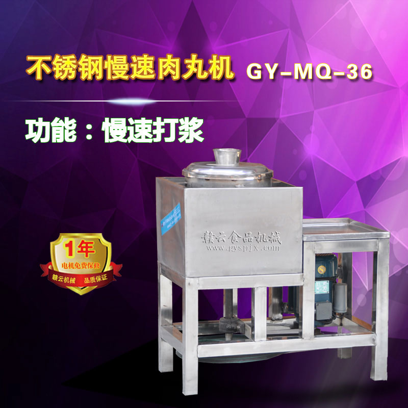 肉丸打浆机又分为高速和慢速。我厂为您提供的这款且具有美观大方,慢速打浆机价格合理、结实耐用,操作维修方便、高效省电等特点,36型慢速肉丸机打一次装肉量为40斤左右,模拟手工拍打肉浆的原理设计而成,更适用于鱼丸、牛肉丸和贡丸的加工生产制浆之用。