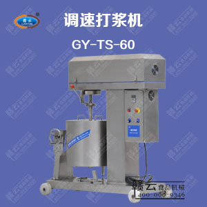 型号:GY-TS-60 名称:变频调速打浆机 容量:100L 功率:7.5kw 电压:380v 产品体积:1500×610×1630 单次产量:100kg/次 调浆时间:1-25min/次 变频转速:1-1400r/min